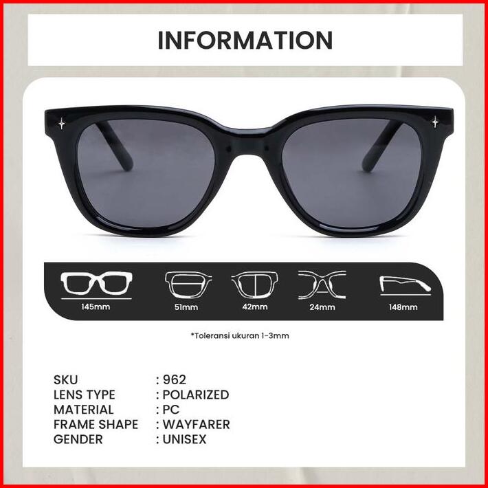 Kacamata Hitam Sunglasses Wayfarer Polarized Fashion Berrybarton 962