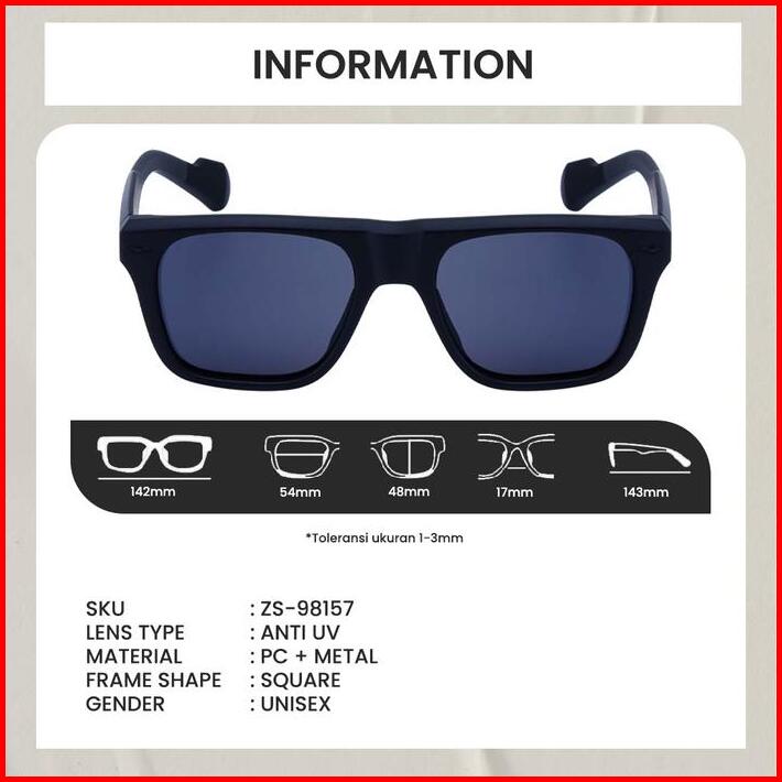 Kacamata Hitam Kotak Pc Metal Wanita Pria Fashion Sunglasses Anti Silau Uv 400 Zs 98157