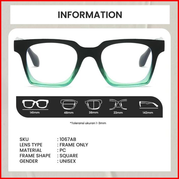 Kacamata Frame Kotak Anti Radiasi Blueray Photocromic Fashion Berrybarton 1067 Ab