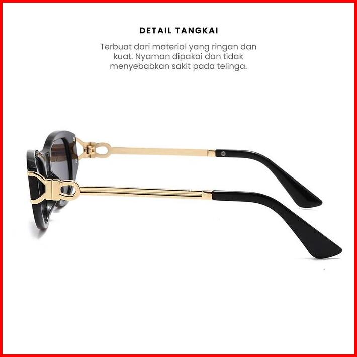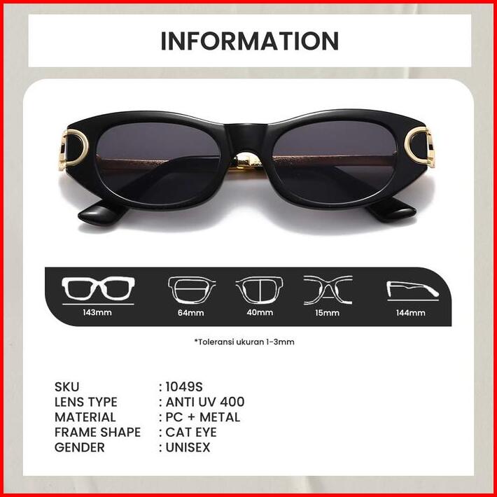 Kacamata Hitam Sunglasses Metal Cat Eye Anti Uv Berrybarton 1049 S