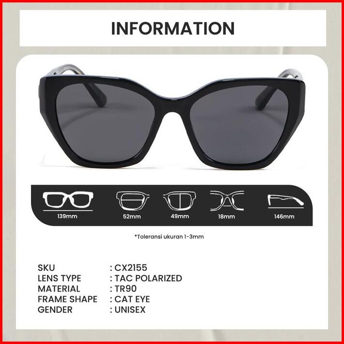 Kacamata Hitam Sunglasses Frame Cat Eye Wanita Modis Tr90 Tac Lensa Polarized Fashion Women Berrybarton Cx2155