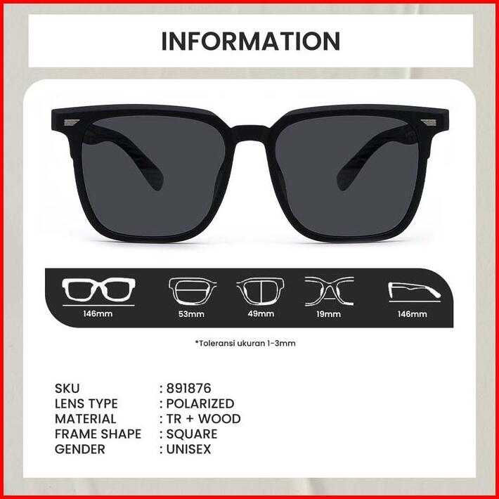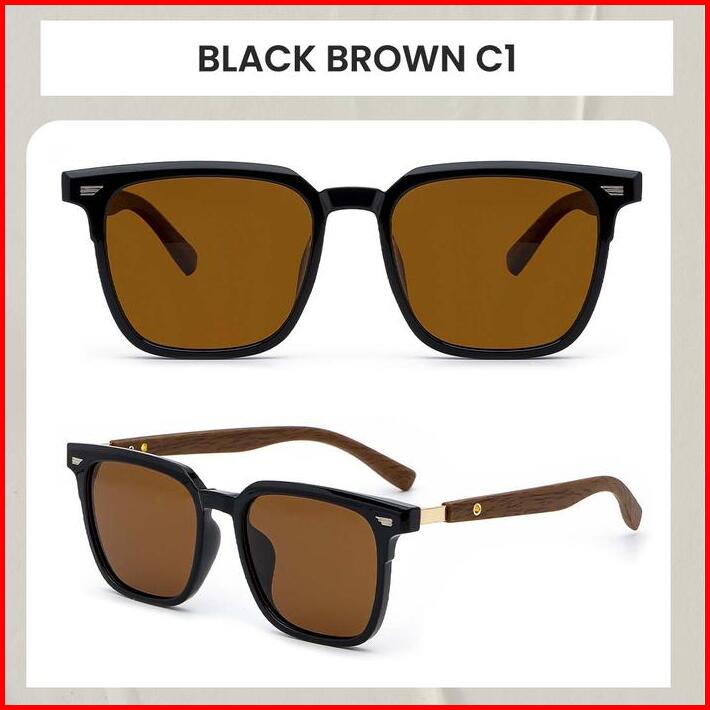 Kacamata Hitam Polarized Frame Kotak Plastik Tekstur Kayu Fashion Pria Wanita Anti Silau 891876