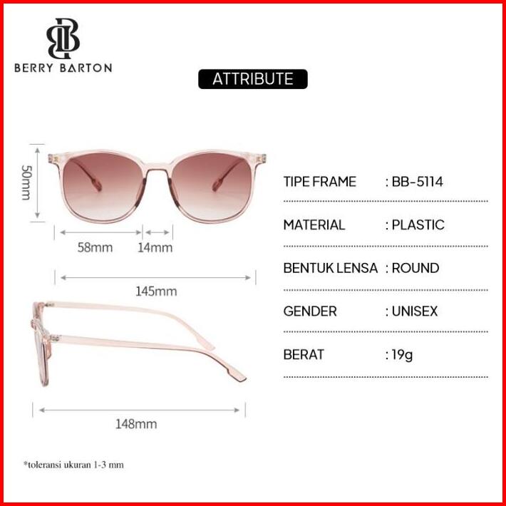 Kacamata Hitam Fashion Bulat Plastik Sunglasses Anti Uv400 Bb 5114