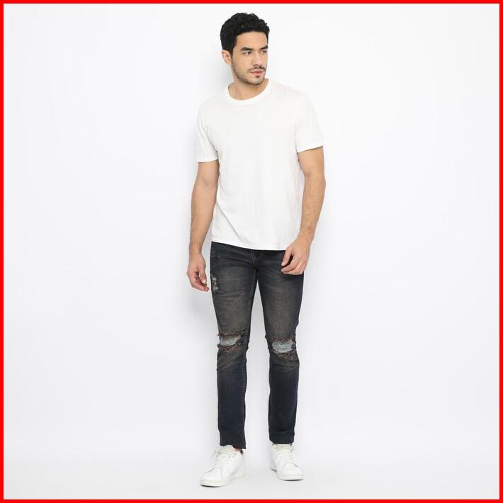 Trondheim Celana Jeans Pria Denim Pants Ripped Sergei Whisker Black Indigo