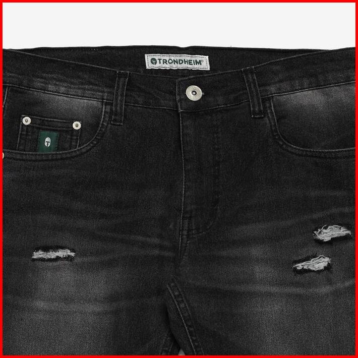 Trondheim Celana Jeans Denim Pria Sobek Alain Whisker Blackjazz Indigo Panjang Stretch Slim Fit