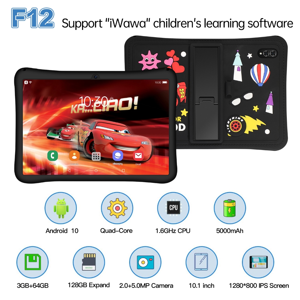 Hancdon F12 10Inch Tablet Anak Android Murah 5G Kids Tab Baru Ram 3/64G Touch Screen 10.1inch Android 10 Kids Tablet 2 K