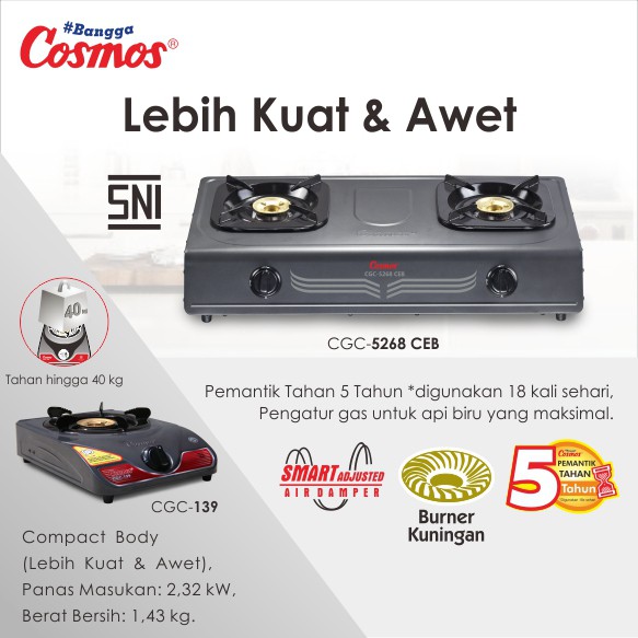 KOMPOR GAS 2 TUNGKU TURBO COSMOS STAINLEES TELL TERBARU BEST SELLER GARANSI RESMI 1 TAHUN