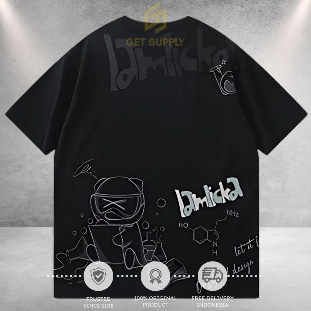 LAMLICKA SCIENCE CARTOON PANDA OVERSIZE SHORT SLEEVE UNISEX BRANDED IMPORT ORIGINAL KAOS STREETWEAR