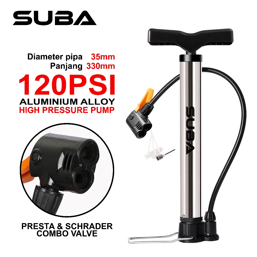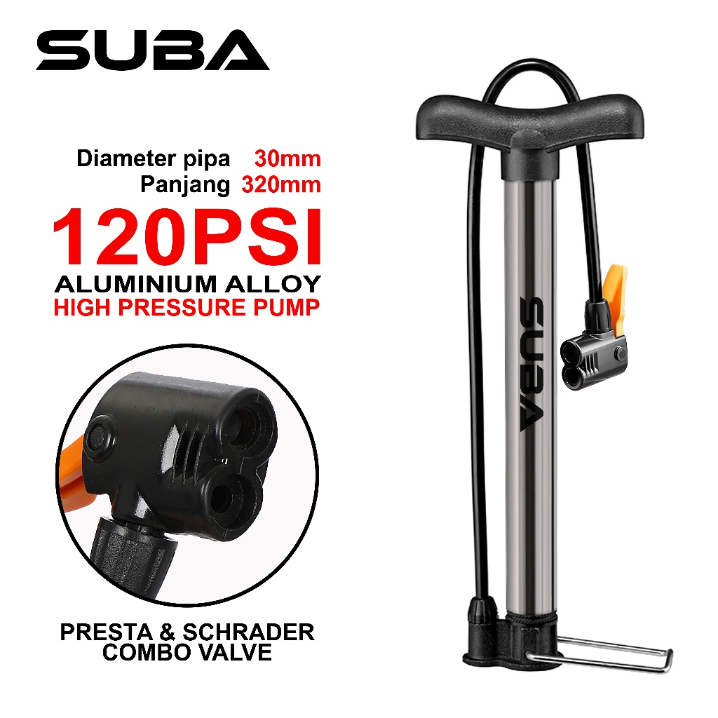 Pompa Sepeda SUBA Super Pump 120 Psi - Bicycle Mini Pump Presta, Schrader, Dunlop