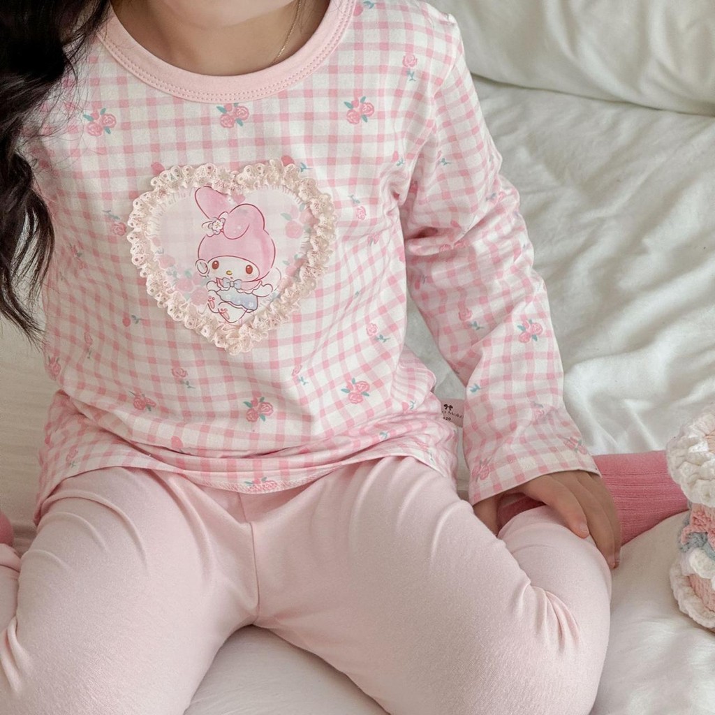 Littlelove Setelan Piyama Anak Perempuan Lengan Panjang Motif Karakter Sanrio & Renda Lucu – Baju Tidur Melody Kuromi Ci