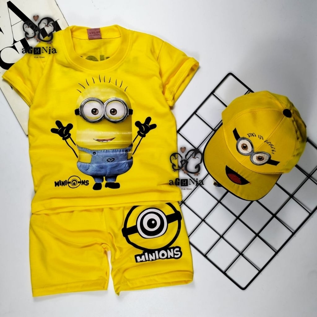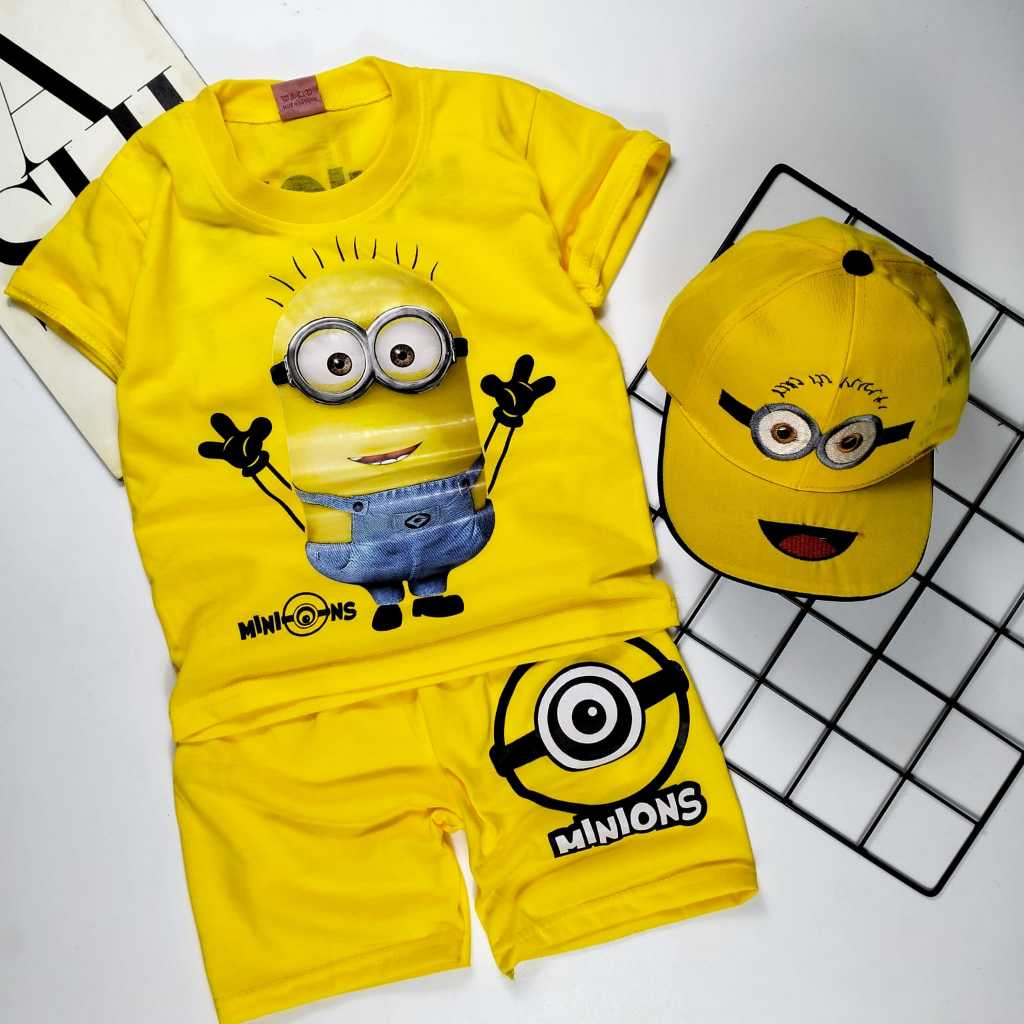 Baju Minion Anak Cowok Cewek Lengan Pendek Warna Kuning Setelan Baju Anak Laki-laki Perempuan Untuk Usia 1-10 Tahun Set