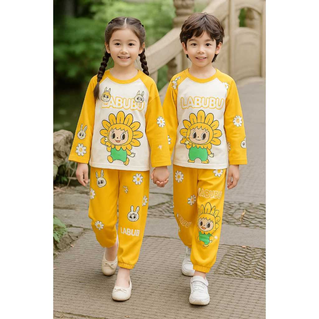 Setelan Piyama SUN FLOWER BIG Baju Tidur Anak Perempuan Anak Laki-Laki Unisex Umur 4-15 tahun Lengan Celana Panjang