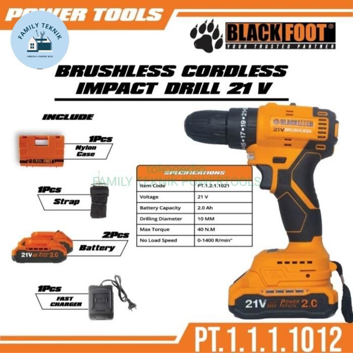 BLACKFOOT BOR BATERAI 21 VOLT 2.0AH BOR BRUSHLESS CORDLESS 21V 10MM