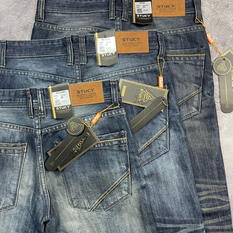 Celana Jeans Panjang Pria Celana Denim Stucy Fading Spray Jeans Straight Slim Selvedge Accent Celana Jeans Cowok Premium