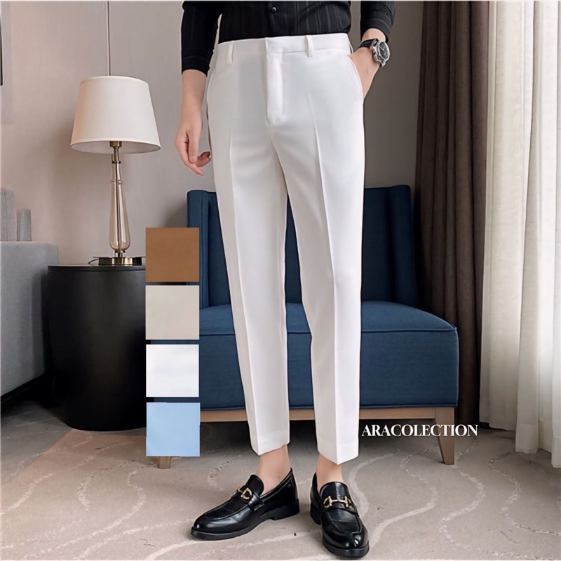 ARACOLECTION- Limited Warna Celana Ankle Pants Pria Celana Casual Bahan Kerja Kantor Formal slimfit