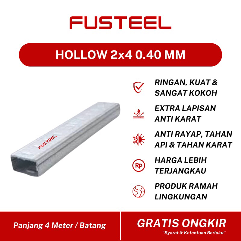 FUSTEEL Hollow 2x4 0.40 mm Rangka Plafon Gypsum Baja Ringan Galvalum