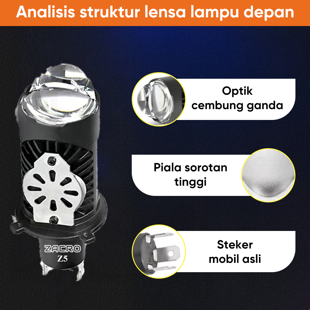 Lampu Utama LED H4 Original Z5 High Low AC DC Plus Kipas Pendingin Full Aluminium