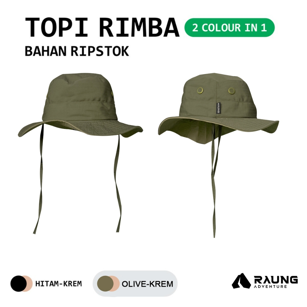 Raung Adventure - Topi Rimba / Topi Gunung / Topi Lapangan - 2In1 Bahan Ripstok Double