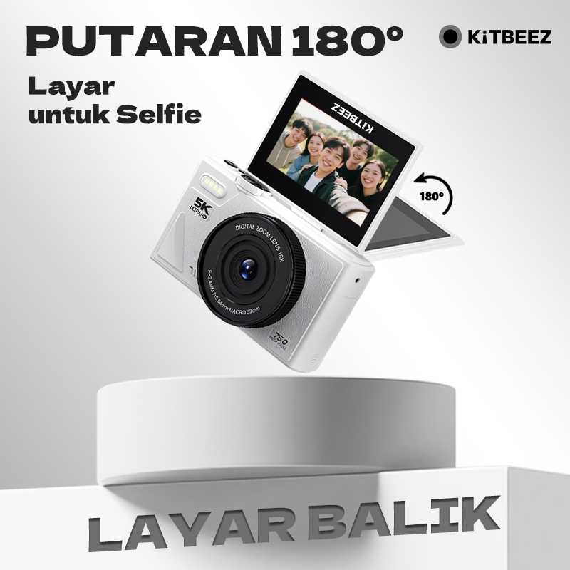 [Star] KiTBEEZ KP-2 Kamera Digital WiFi 5K Hitam Putaran 180° Zoom 18x With 52mm 0.45X Wide Angle+Macro lens