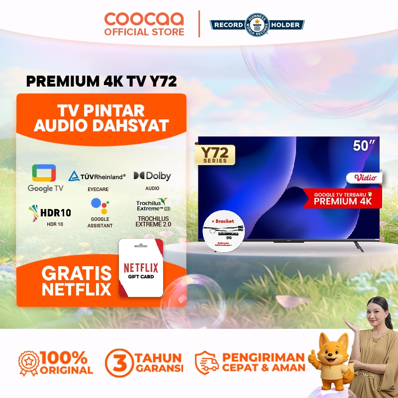 TV SMART DIGITAL COOCAA [+ BRACKET] 50 INCH Y72 4K GOOGLE EYE CARE GOOGLE ASSISTANT DOLBY AUDIO LOW BLUE LIGHT FLICKER FREE BLUETOOTH MIRRORING WIFI USB/LAN ( 50Y72)