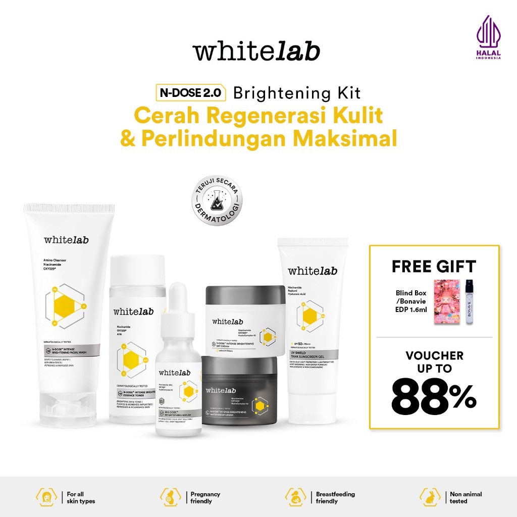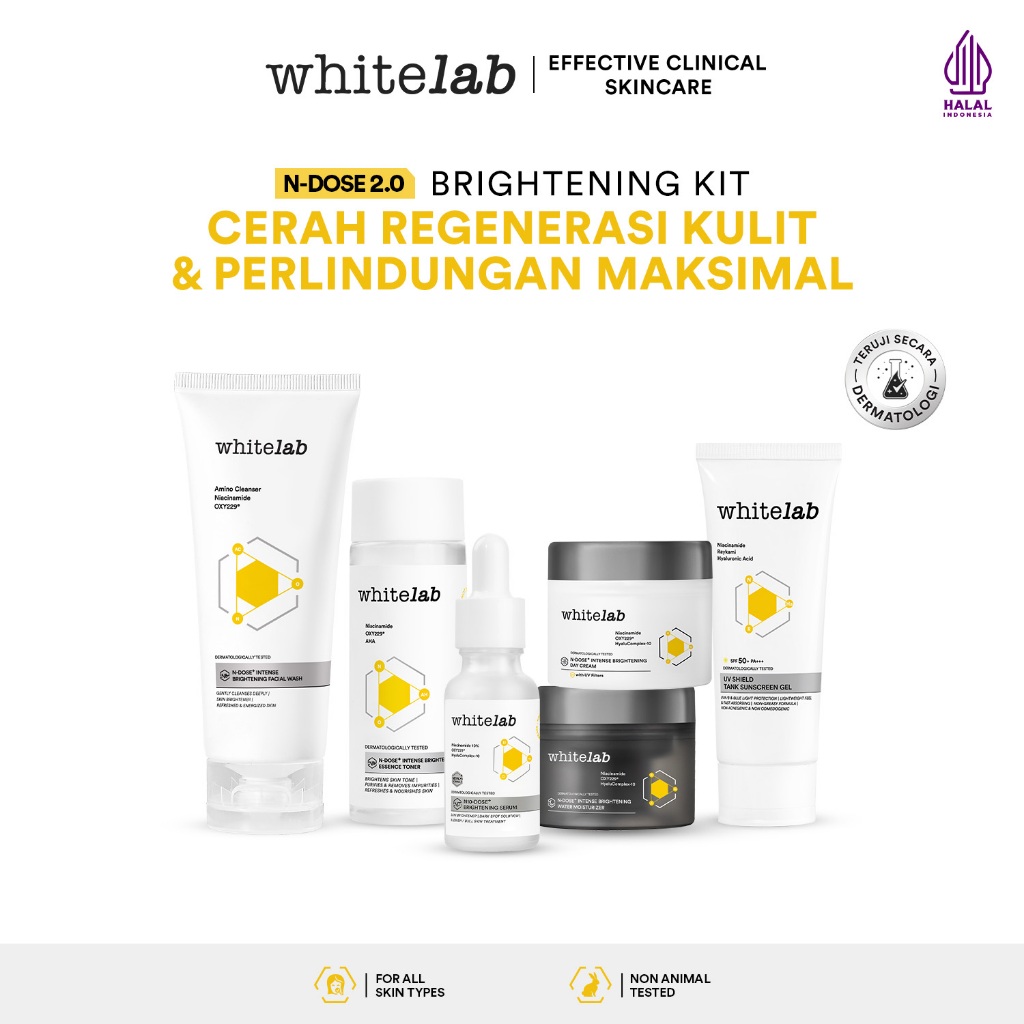 WHITELAB 6 Pcs N-dose+ 2.0 Paket Wajah - Facial Wash Toner Serum Moisturizer Sunscreen Paket Skincare