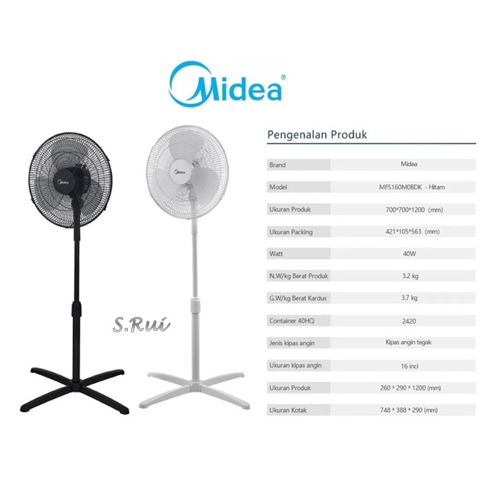 Kipas Angin Berdiri Midea Stand Fan MFS160M0BDK 16 inch 40Watt Murah Terlaris