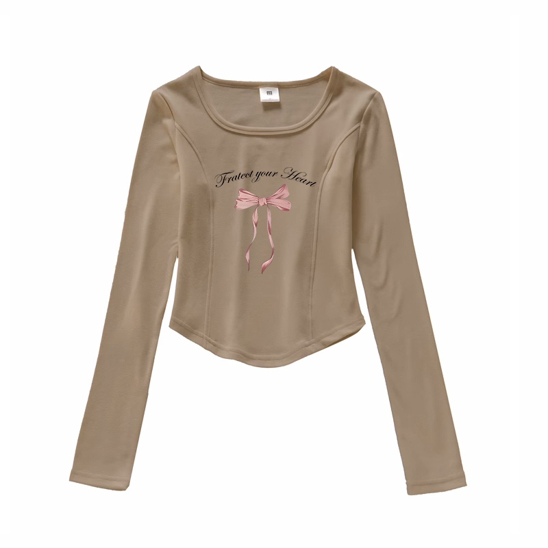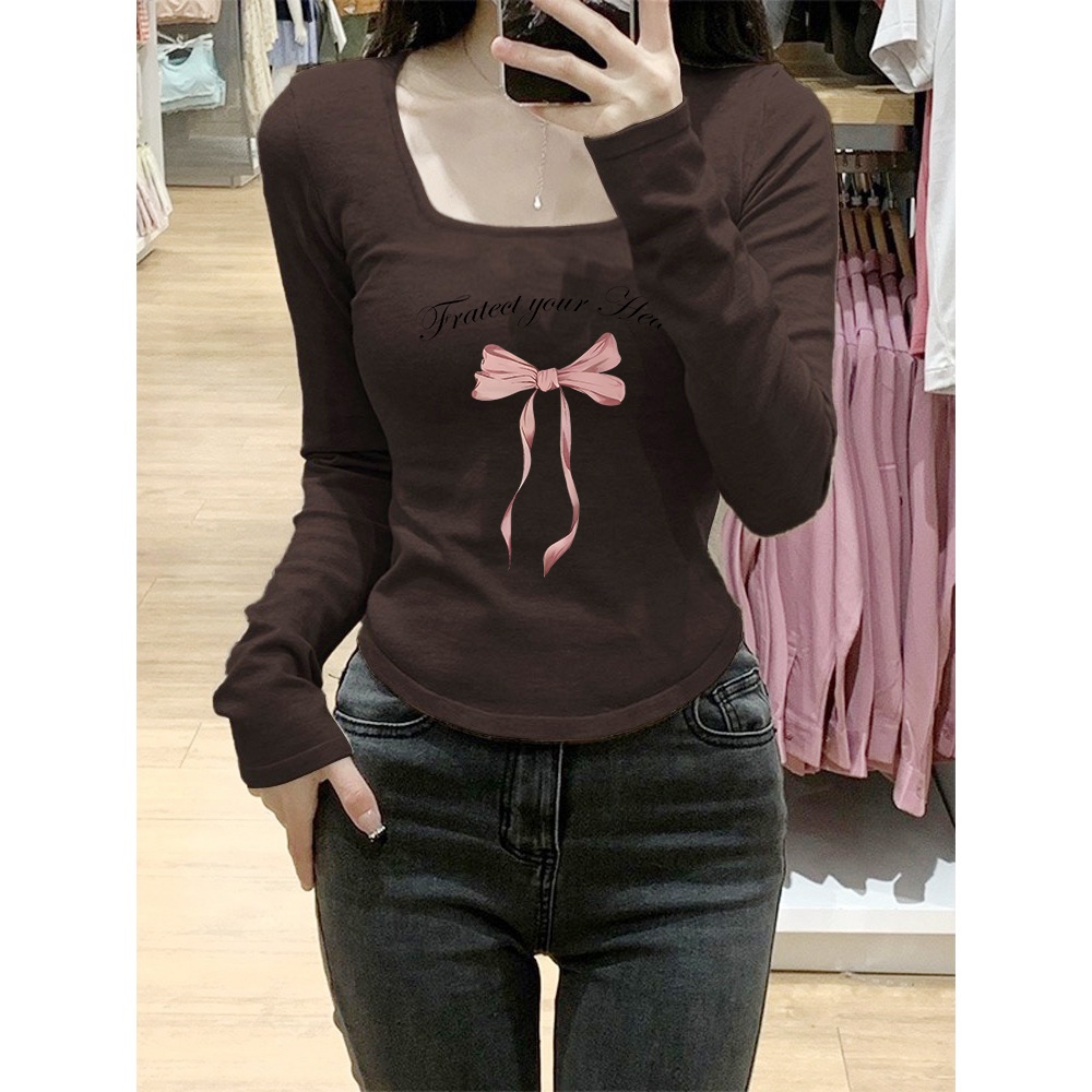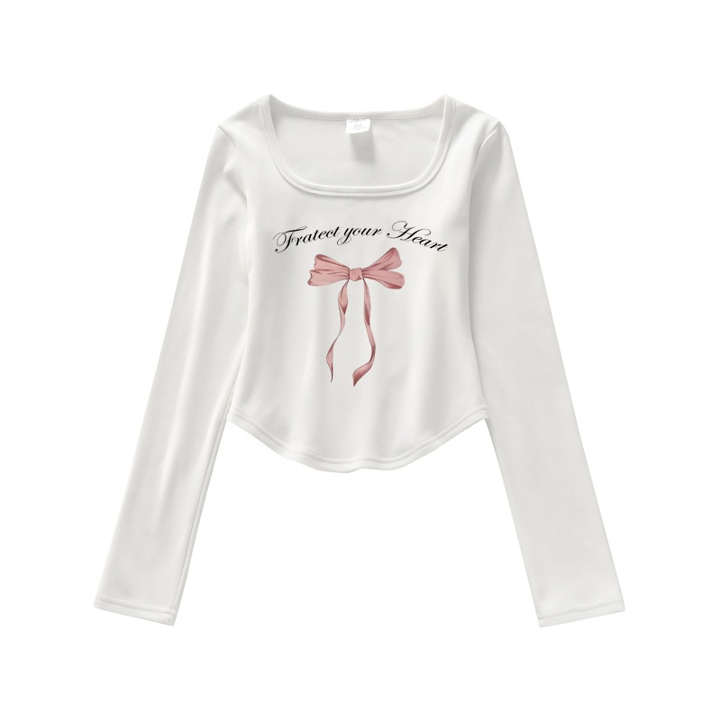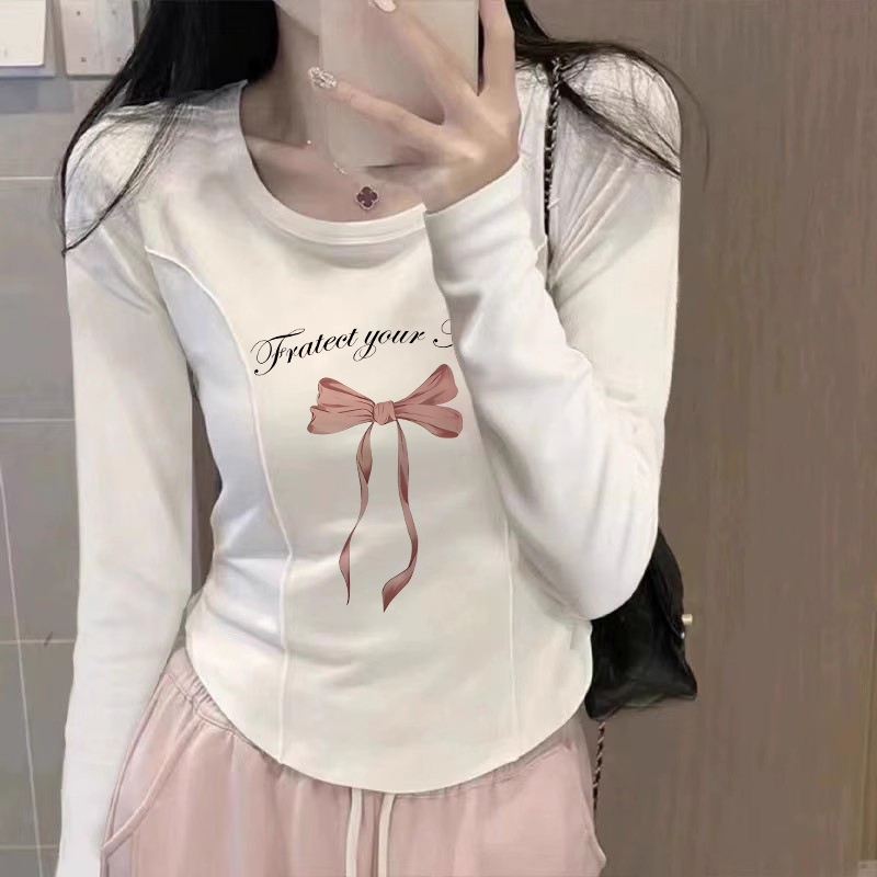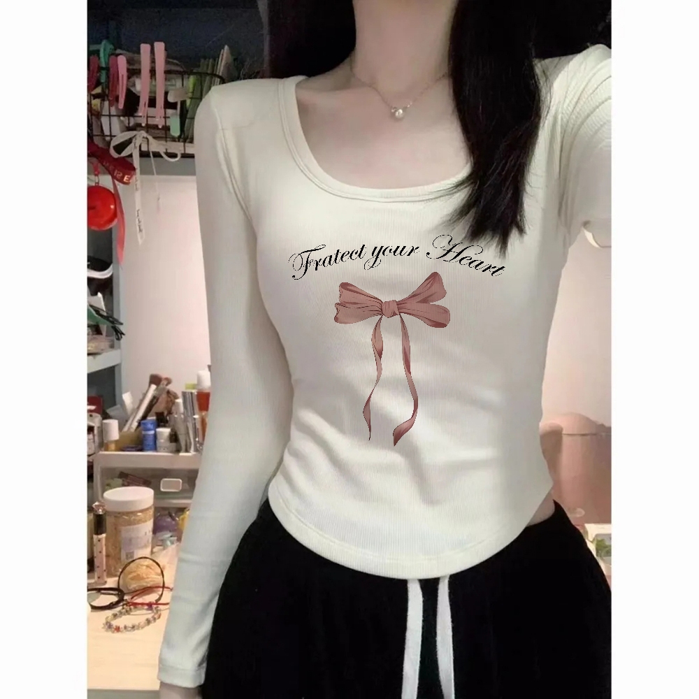 Atasan Wanita Korean Style Longsleeve/Kemeja Putih Wanita Slim Crew Neck Crop Top Y2K/Lengan Panjang Baju Wanita Kekinia