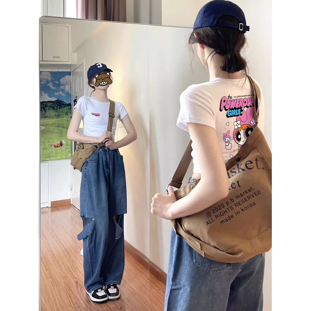 Misco Baju Atasan Wanita Terbaru Crop Top Korean Style Cetakan Kartun Anime Crop Top y2k Kaos Wanita Lengan Pendek