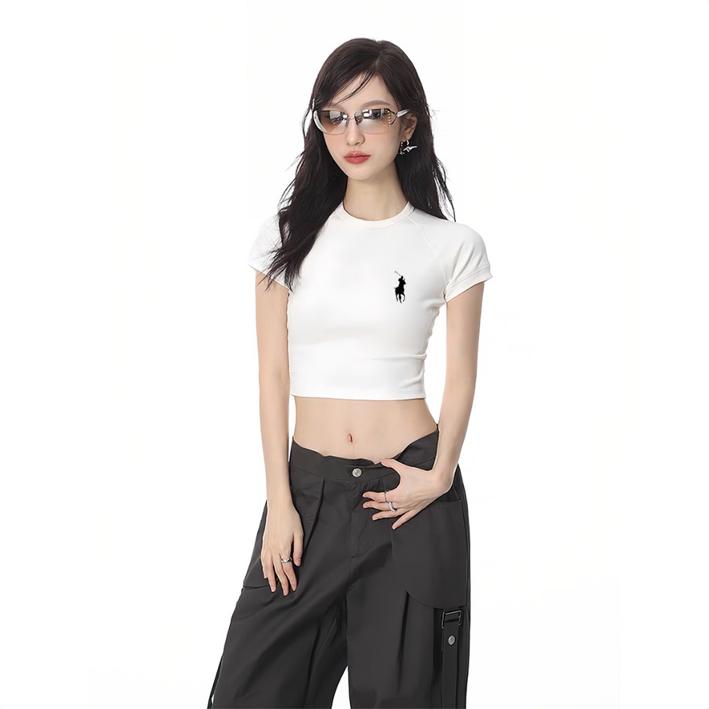 ✅ Ship locally T-shirt Crop Top Lengan Pendek Kaos Wanita Crop Top Korea Simple logo Kaos Crop Wanita Kekinian Baju Atas
