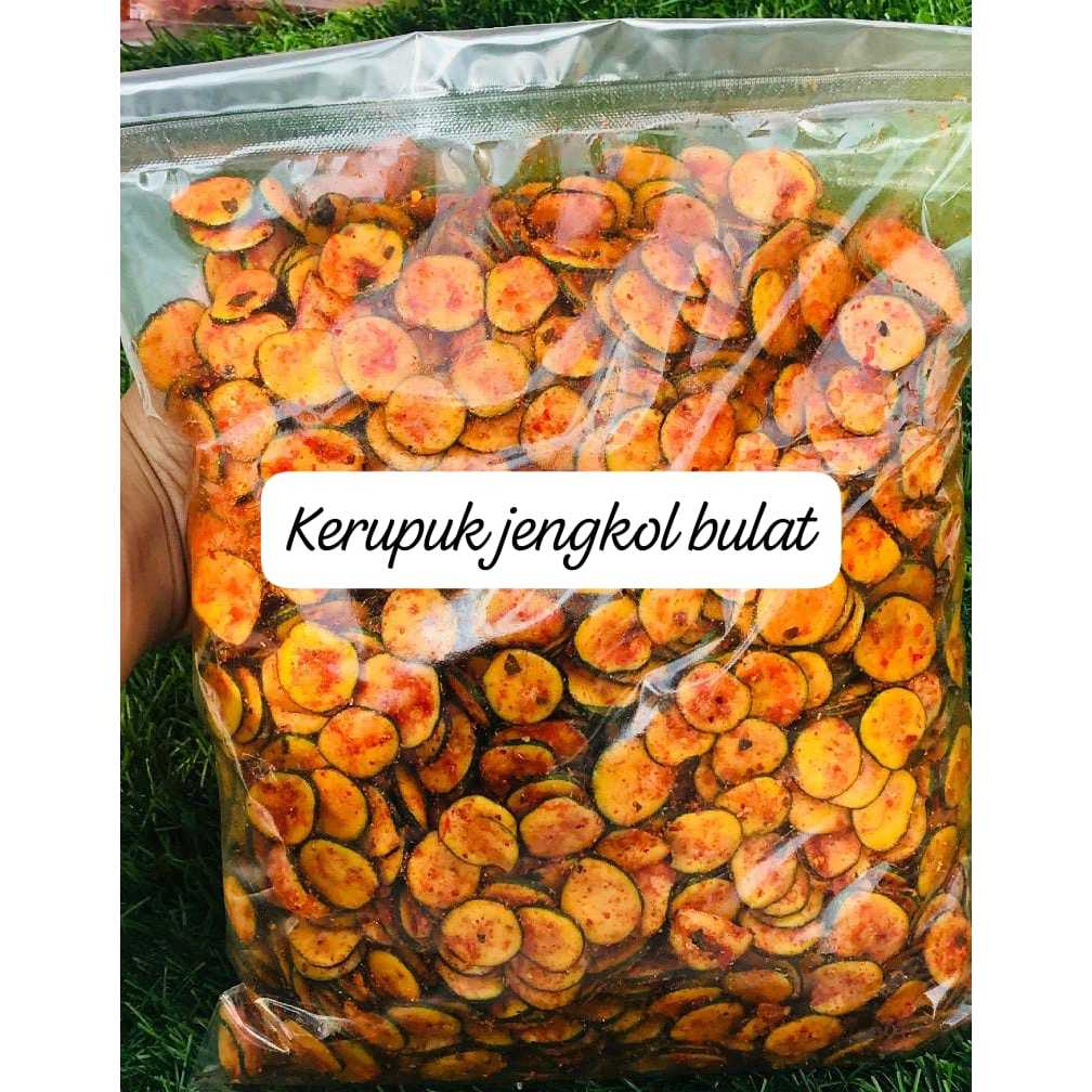kerupuk jengkol bulat pedas dan tidak pedas daun jeruk