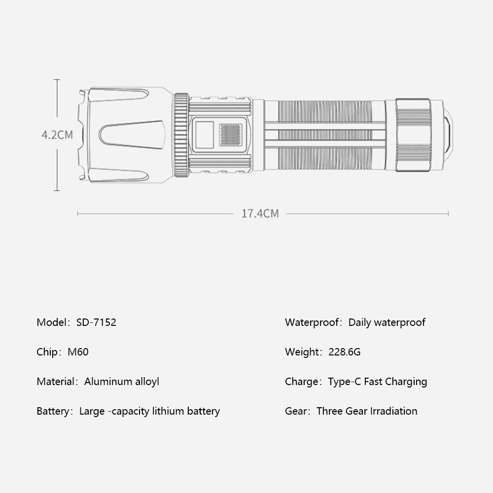 Senter Smiling Shark SD7152 SmilingShark SD 7152 M60 Powerbank Type-C Rechargeable Waterproof Zoom
