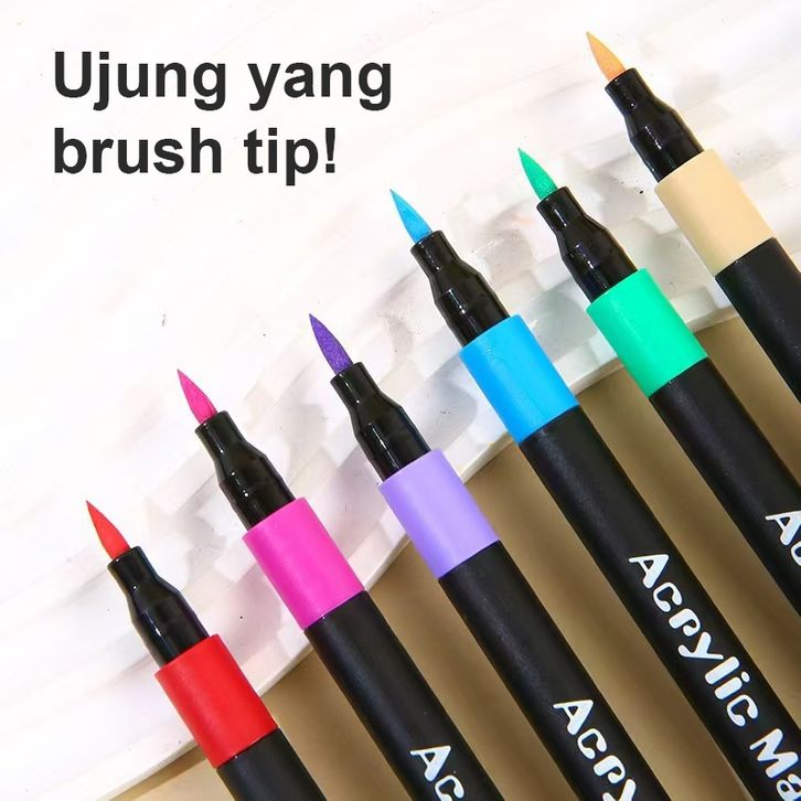 Akusa Marker Acrylic Brush Warna Spidol Akrilik DIY Sketch Painting Tinta Waterproof Ujung Lentur Tip MW022