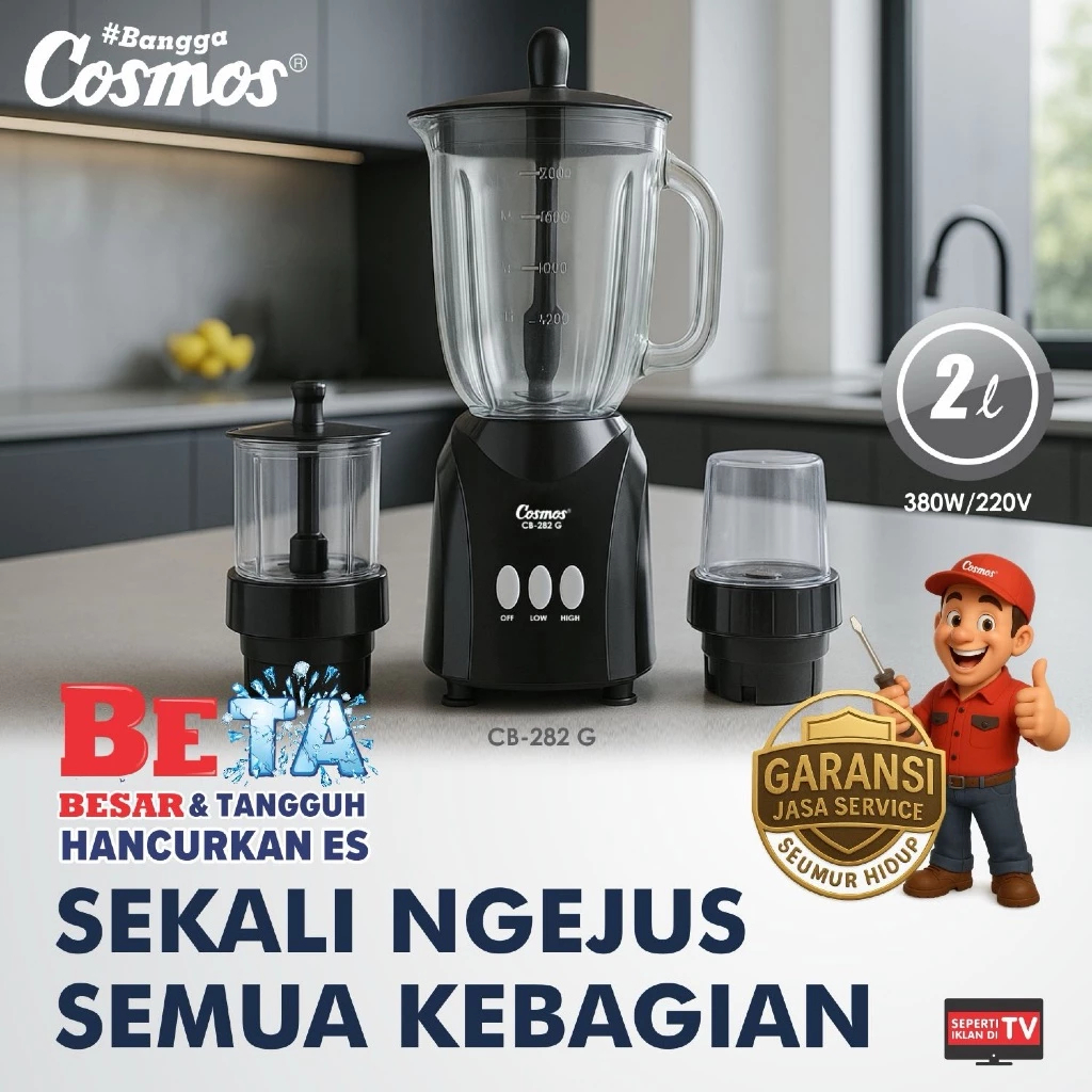 Blender Cosmos 3 in 1 Kaca Big Capacity Beta series 2 liter CB-282 G