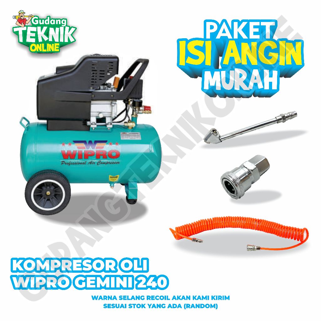 KOMPRESOR ANGIN LISTRIK 24L WIPRO GEMINI 240 1HP / PORTABLE AIR COMPRESSOR 24 LITER 240 1 HP WIPRO PAKET LENGKAP