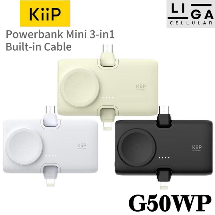 KiiP G50WP Powerbank Mini 3in1 Built-in Type C Lightning iWatch 5000mAh 20W Fast Charging