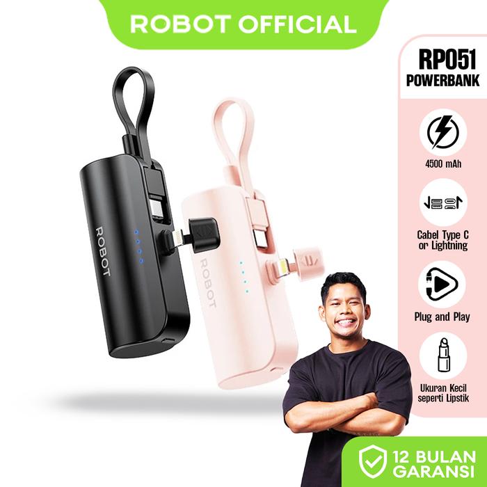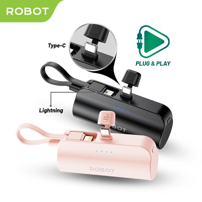 [EKSLUSIF IBEN] Robot Mini Powerbank RP-051L /RP-051C (Black and Pink) Port Type-C Lightning Travel Size