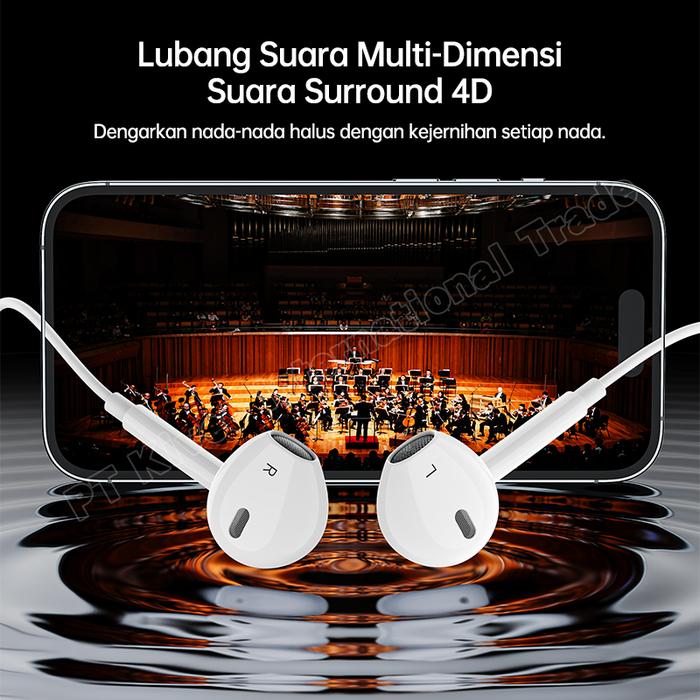 KIVEE Headset iphone Music Game KV-MT30 Pro Lightning 6D HD In Ear Original Putih Earphone Headphone Bass Biru Merah