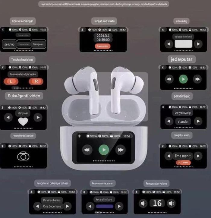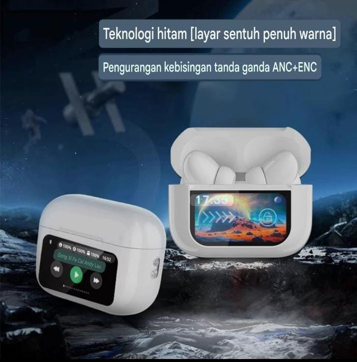 Earphone Bluetooth TWS A9 Pro ANC/ENC dengan Layar Digital Touchscreen Headset Bluetooth Nirkabel