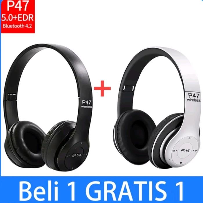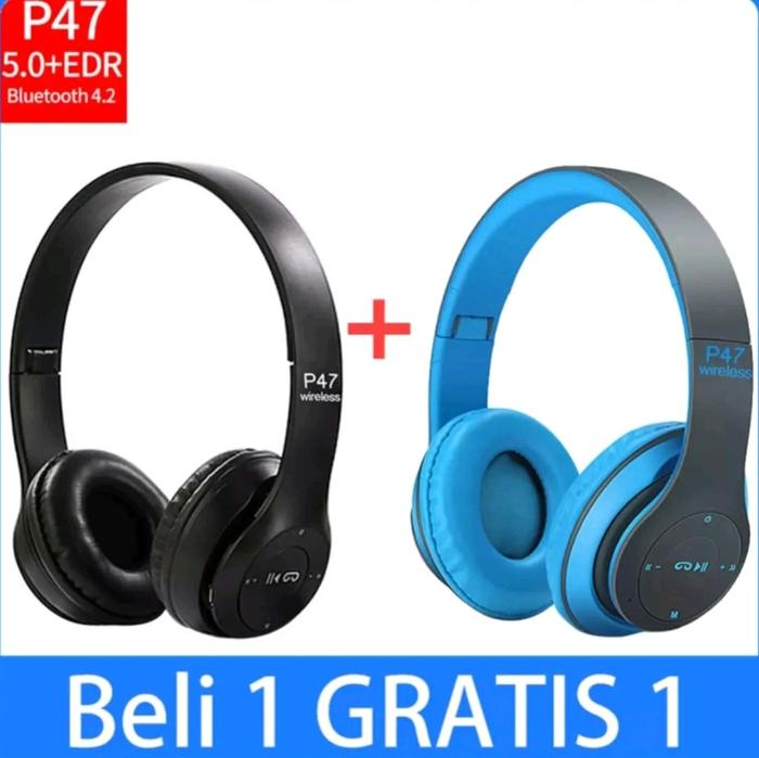 Beli 1 Gratis 1 Termurah!!! Headset Bluetooth P47 Heandphone Wireless Bluetooth Earphone Sporty Headphone Handsfree
