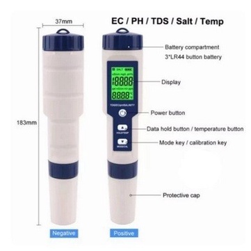 5 in 1 Testing Meter EZ 9909 PH Meter TDS EC Salinity Temperature Alat Ukur Penguji kualitas Air