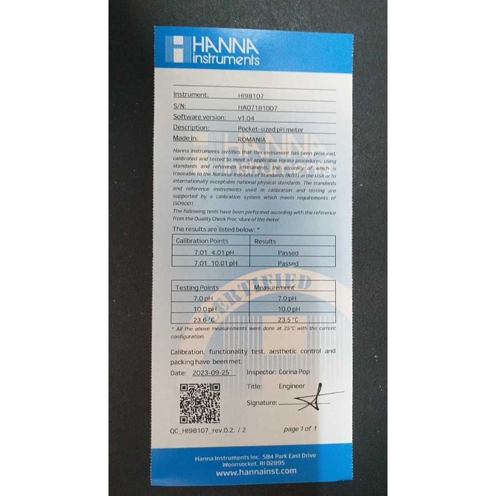 PH Meter Hanna HI 98107 / PH Meter Digital Hanna HI 98107 - Khusus Air Tawar