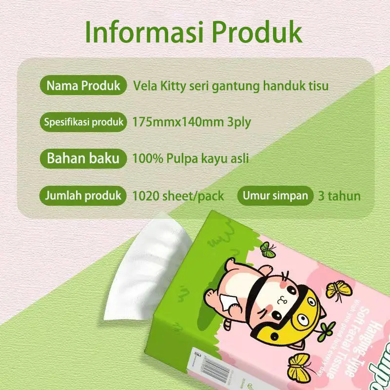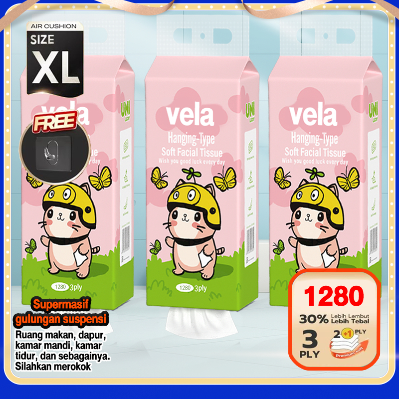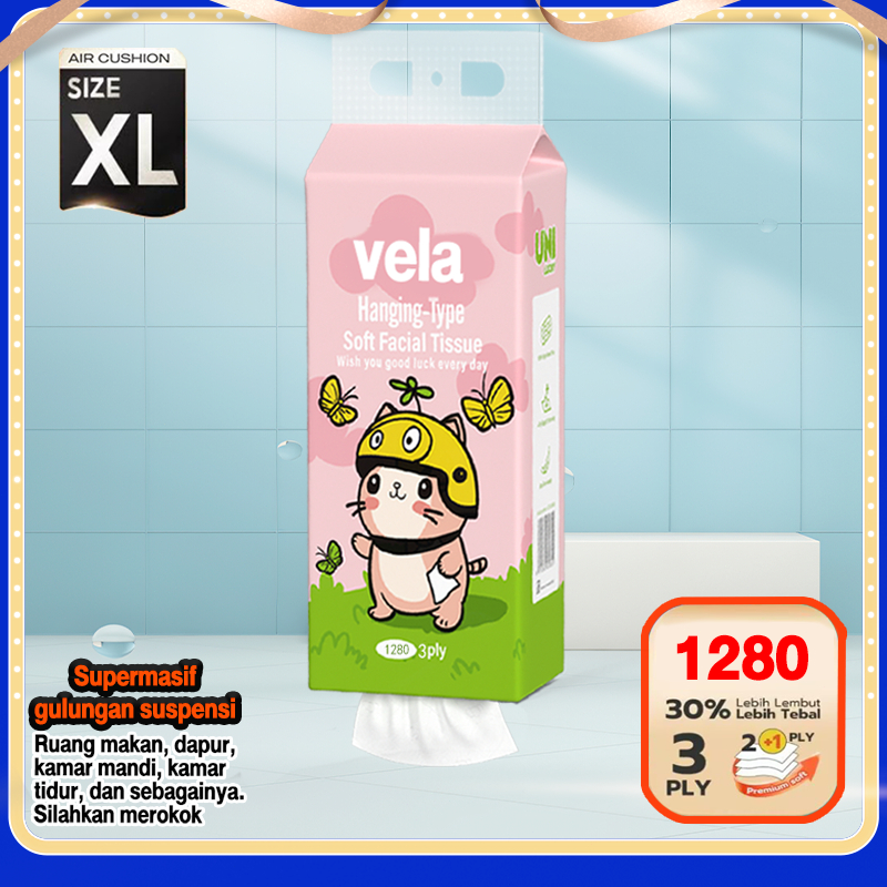 3 PLY VELA GANTUNG Tissue, 1280 SHEETS Tissue Elegan Vela Tissu Tissue Minyak Tissue Serbaguna Tissue Mobil Wajah Tissue Lucu Tissue Murah Tisu