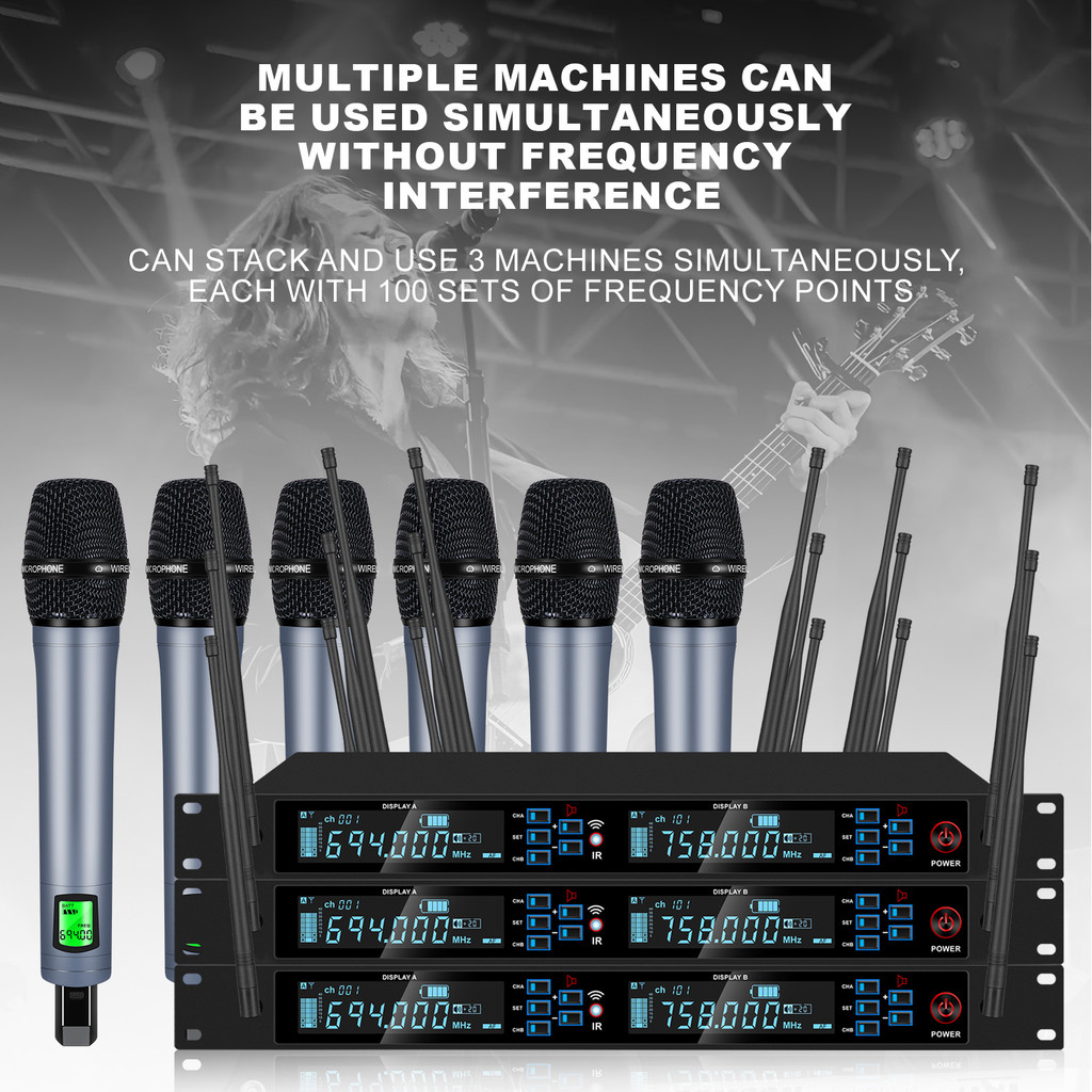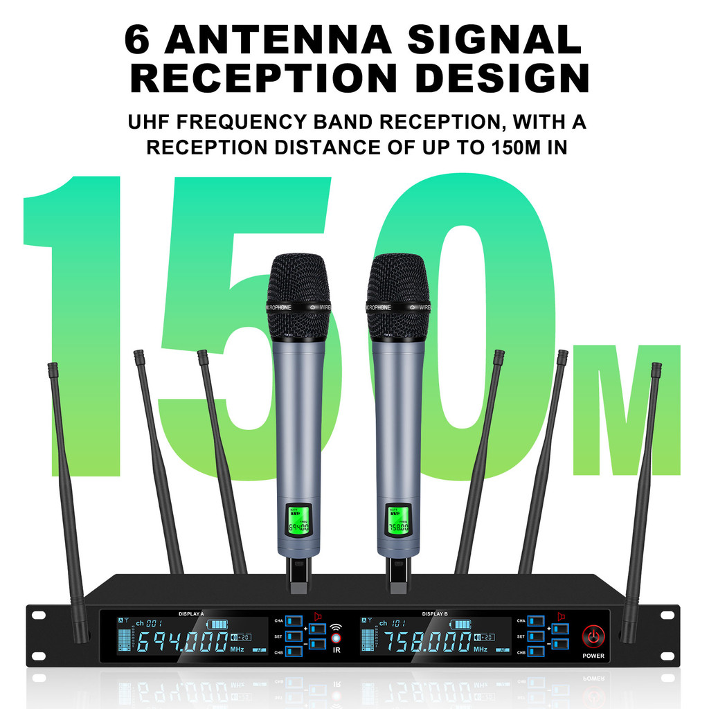 RA-26 mic wireless vokal original karaoke suara jernih mikrofon tanpa kabel mikrofon logam 2 mic murah Penerima 6 antena