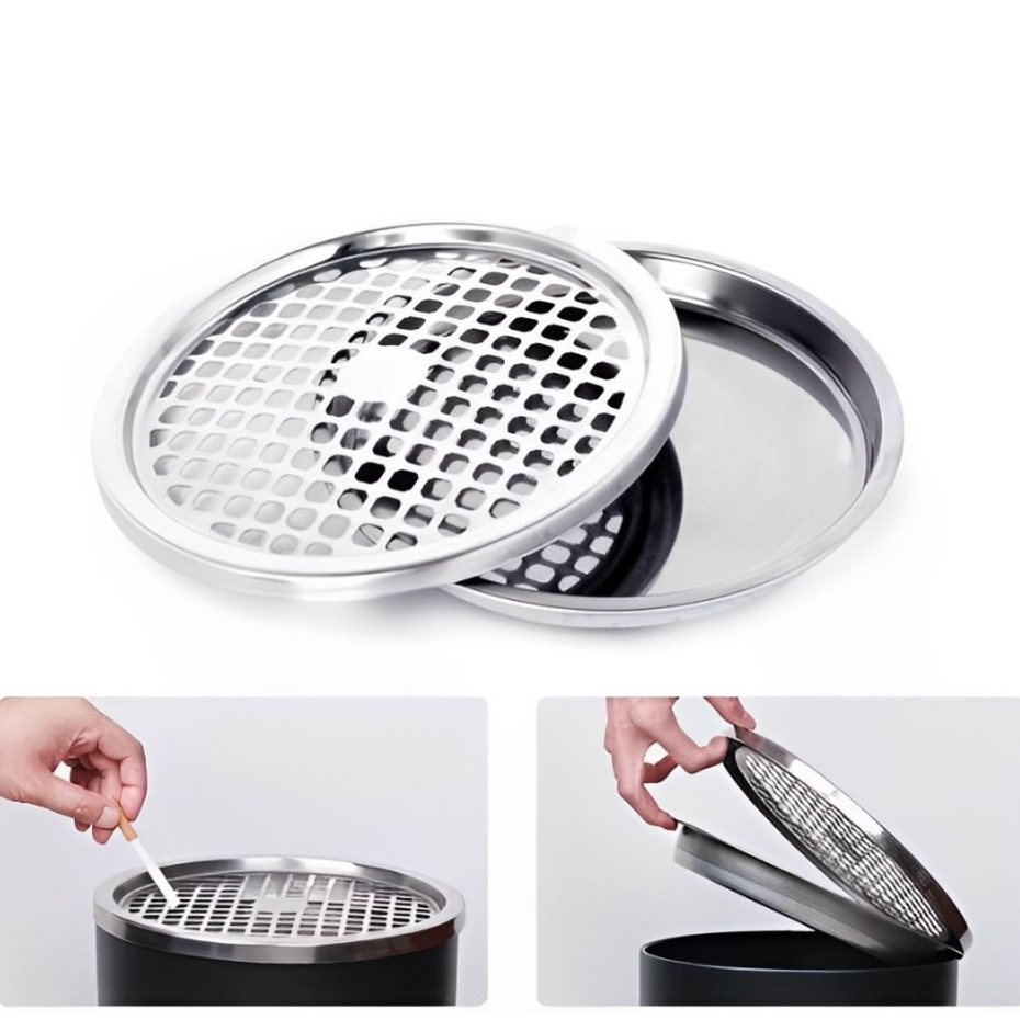 tempat sampah besar Perforasi Standing Ashtray Tempat Sampah Hotel Tempat Sampah Wadah Asbak Stainless Steel Hitam