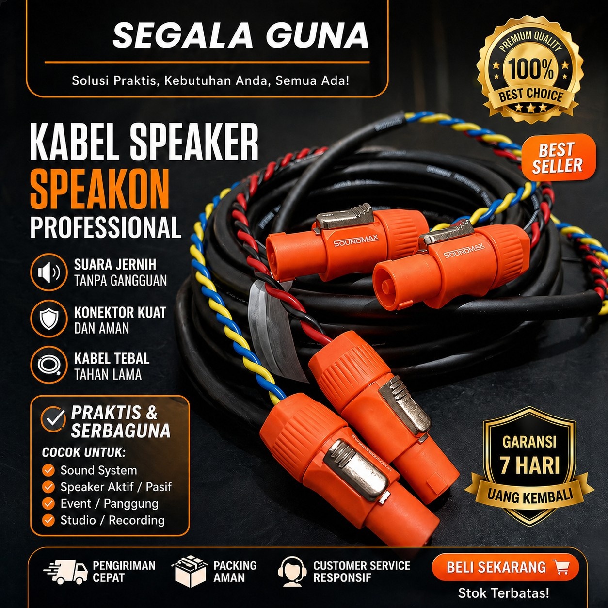 KABEL SPIKER PROFESSIONAL 15 METER KABEL SPEAKER SOUNDMAX 4X2.5 PLUS JACK SPEAKON SOUNDMAX ORANGE TERMURAH DI AKULAKU