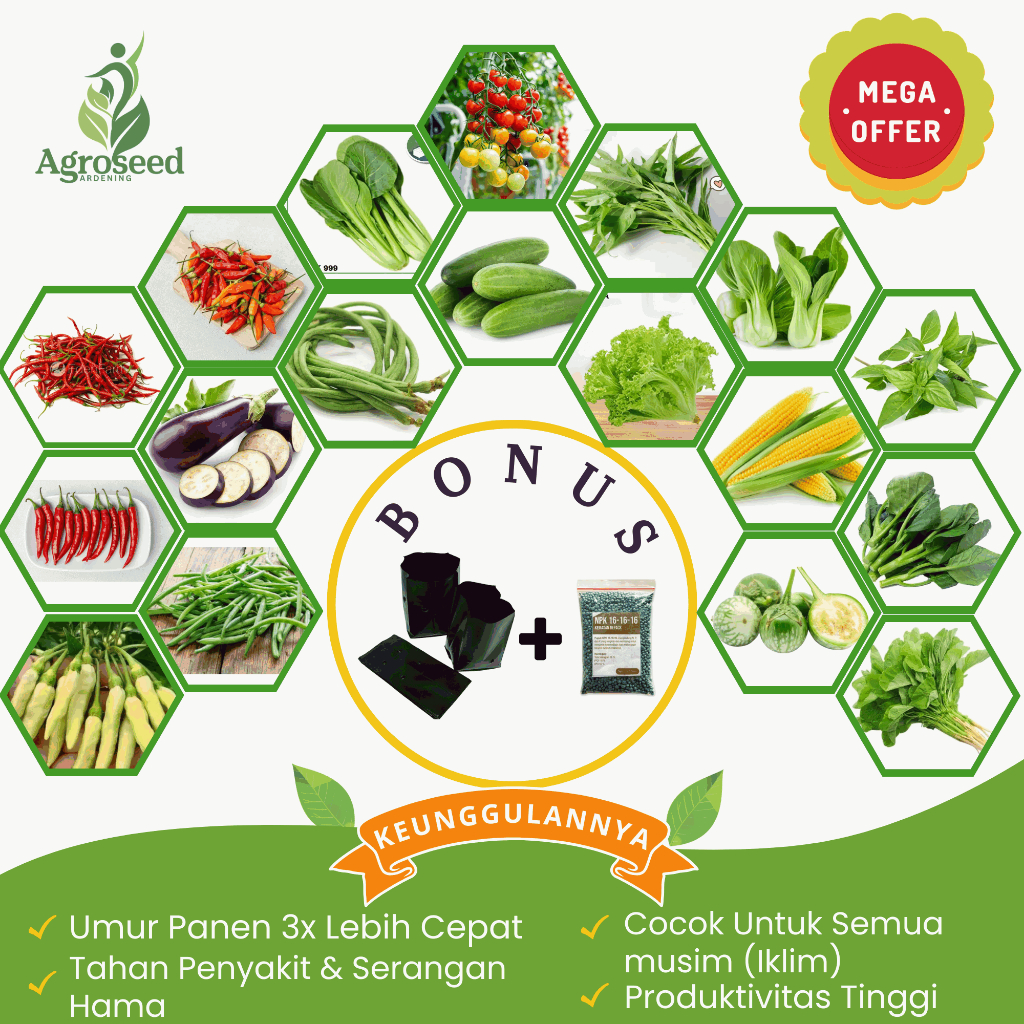 18 Paket Lengkap Jenis Benih Super Tanaman/Sayuran Lengkap Bibit Unggul Cepat Tumbuh Benih Seribuan