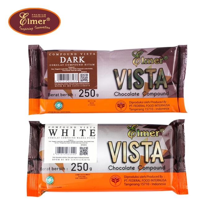 ELMER COMPOUND VISTA DARK & WHITE 250GR | Cokelat Batang Cokelat Compound Dark & White | Coklat & Putih Chocolate - Dark