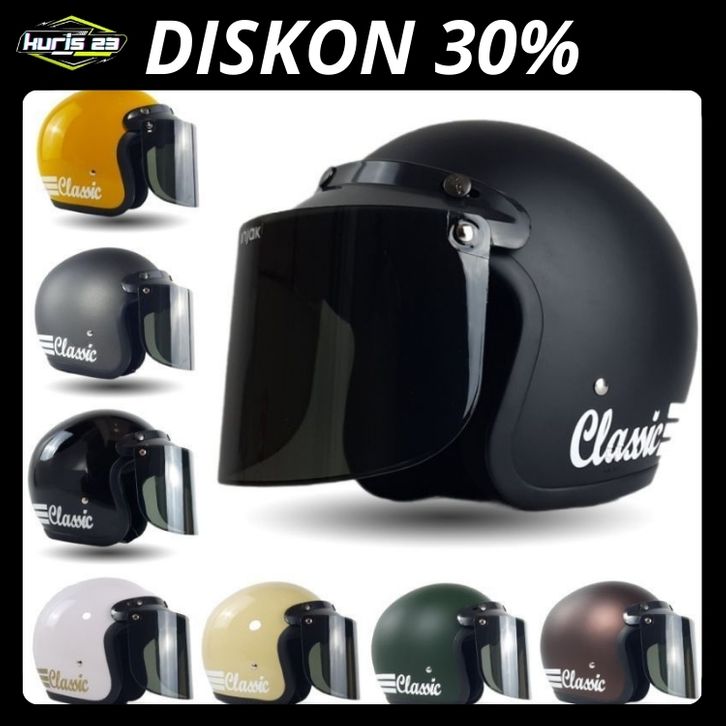 HELM BOGO GARIS CLASIC FULL LEHER PRIA WANITA DEWASA TERMURAH TERLARIS GRATIS ONGKIR