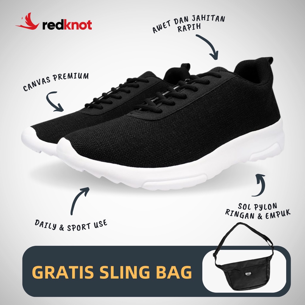 ( HARGA PROMO ) Redknot Phillip Hitam - Bonus Slingbag Pria Senilai 400 Ribu - Sepatu Sneakers Pria Murah | Sepatu Pria