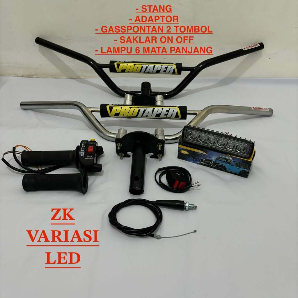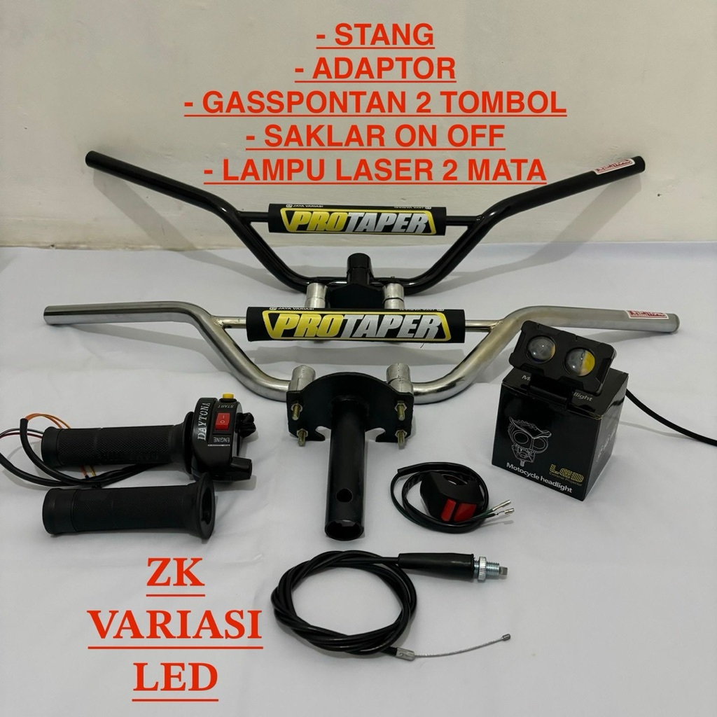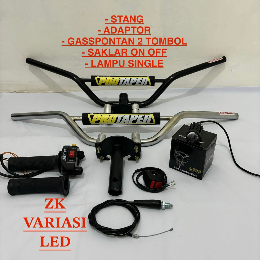 Paket paketan Stang Trail Hitam/Chrome busa Protaper Adaptor Honda Gasspontan 2 tombol saklar free lampu sorot